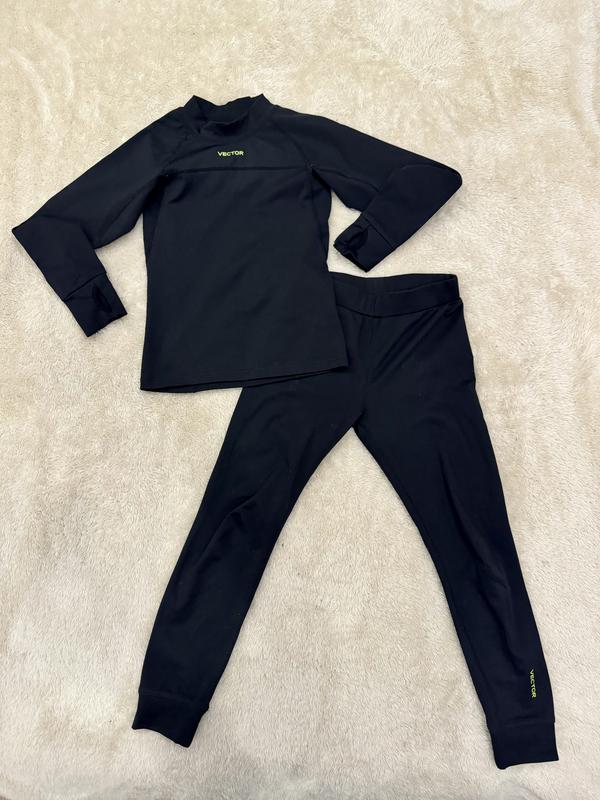 Термобілизна Vector 140 чорного кольору, ідеально підходить для зими. Цей бренд створює суто гірськолижний одяг. Забезпечує тепло та комфорт у будь-яких умовах. Чудовий вибір для активного відпочинку на вулиці. За якістю набагато кращий за Reima Трошки маломірить. Підійде на 8 років Заміри: штани довжина 71 см, пояс 27 см Кофта довжина 47 см, рукав реглан 56 см, ПОГ 33 см Стан ідеальний