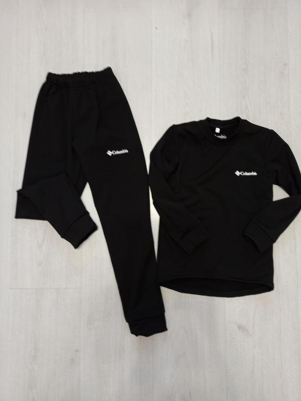 Термобелье комплект (штаны и кофта) для детей, есть манжеты на рукавах и штанах. Цвет - черный. Размерный ряд: - L- плечи 32 см, ПОГ 36-48 см, длина 50 см спереди и 55 см сзади, рукав 45 см; резинка 22-37 см, длина 76 см, шаг 56 см, ПОБ 33-43 см. - XL - плечи 27 см, ПОГ 30-40 см, длина 43 см спереди и 48 см сзади, рукав 39 см; резинка 22-38 см, длина 73 см, шаг 55 см, ПОБ 35-45 см. - XXL - плечи 36 см, ПОГ 44-55 см, длина 57 см спереди и 63 см сзади, рукав 57 см; резинка 25-42 см, длина 85 см, шаг 63 см, ПОБ 37-48 см. Так как изделие трикотажное могут быть отклонения +/- 1-1,5 см.