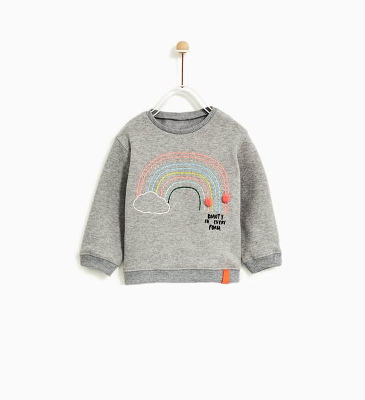 яркий свитшот с вышивкой радуга. стильный оверсайз фасон, качественный пошив. в наличии 1шт на 3-4р, рост 104 замеры: долж 34, пог 33, плечи 28 (линия плеча приспущена), рукав от горловины 40 страна-изготовитель Марокко