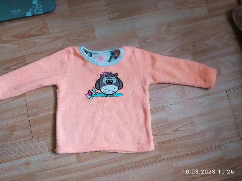 Кофтинка піжамна, або для дому, вік на бірці не вказано, приблизно на 4-5 років, можливо і 6 підійде. Орієнтуйтесь на заміри. Колір яскравіше в реальності. Довжина 41 см. Ширина під мишками 36-37 см. Плечі 26 см. Рукав 36 см. Обміну і повернення немає, задавайте питання всім відповім. Оплата на картку Приватбанку. Доставка УП,НП оплата при отриманні.