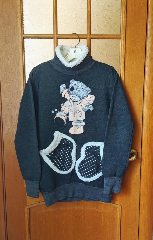 Трикотажный длинный свитер, толстовка серого цвета, б/в, в хорошем состоянии. Размер 42-44, длина спереди 70 см, ширина подмышками 46*2 см, длина рукава 64 см.