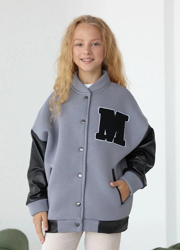 Стильный бомбер 🌷для юной красавицы❤️🔥Ткань трехнитка начос турецкого производителя очень хорошего качества👌,м÷ягенька, дрепящее, для прочности кнопок есть уплотнитель👍 Рукав и вставки экокожа на баочке💕 замеры-длина бомбера\ширина\длина рукава от горловины 134-рост-57/50/60 146 рост-65/55/64 152 рост-68/56/68 Ток