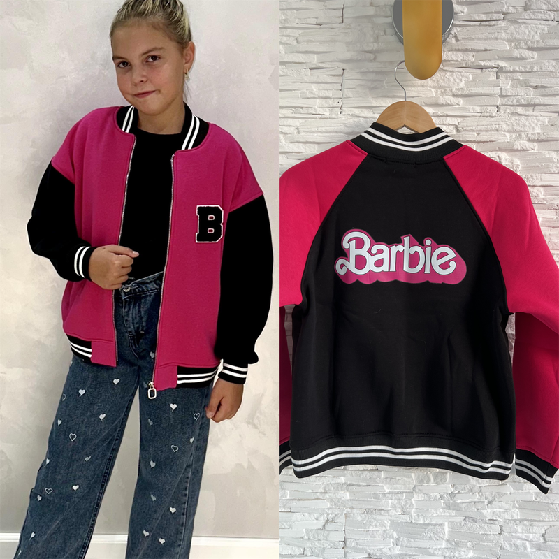 Стильный теплый Бомбер размер ХS на рост 158 ,размер S на рост 164 Ткань трехнитка на флисе.Флис очень плотный.Качество Люкс.Наклейка Barbie как на дополнительных фото с белым! Замеры: XS(158 рост)-полуобхват груди 40,ширина под ручками 52,длина рукава от воротника 69,длиина по спинке 55 S( 164 рост)-полуобхват груди 43,ширина под ручками 53,длина рукава от воротника 69,длиина по спинке 55