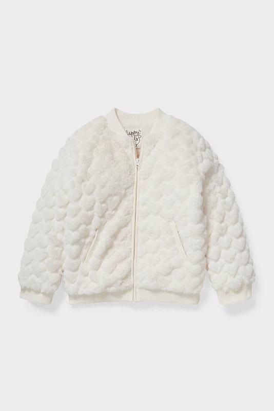 Бомбер от C&A, Германия Отличное качество за отличную цену! Уютный бомбер с рельефным рисунком в виде сердца и двумя прорезными боковыми карманами. Ребристые края и удобная подкладка из джерси. Застежка на блёстке. Цвет: кремовый белый. Размеры в наличии: 110. Цена конечная. 110: Длина от плеча вниз 42,3 Ширина плечей 28 ПОГ 32,6 Рукав от плеча 35,5