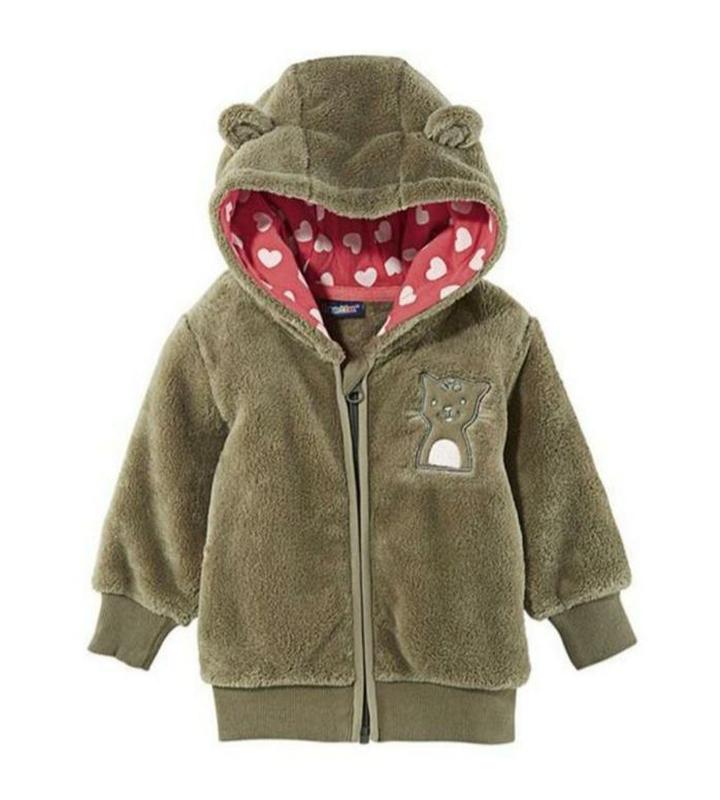 Флисовая кофта на молнии Lupilu Цвет хаки, капюшон с ушками, рукав и низ кофты на резинке Флис мягкий, приятный к телу Размер 86/92 Замеры: длина по спинке 38 см, плечи 26,5 см, пог 33 см, длина рукава от плеча 30 см