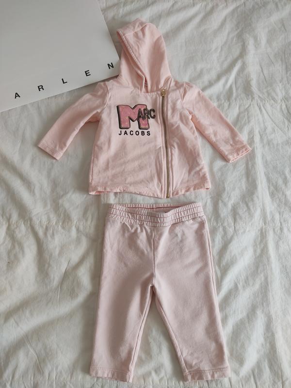 оригинал. нежно розовый цвет. по бирке на 9 мес. новая. брючки чуть чуть светлее толстовки.