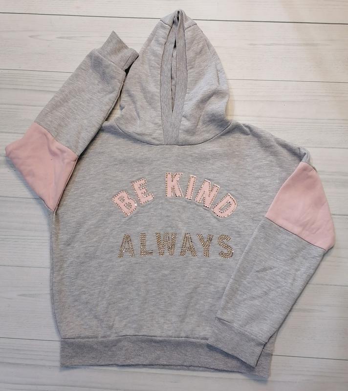 0138 Толстовка для девочки Primark 9-10 лет 140 см. серо-розовая BE KIND ALWAYS