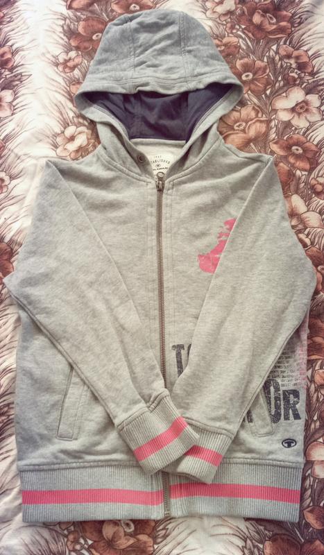 стильная брендовая детская серая для девочки толстовка на молнии с капюшоном от Tom Tailor.