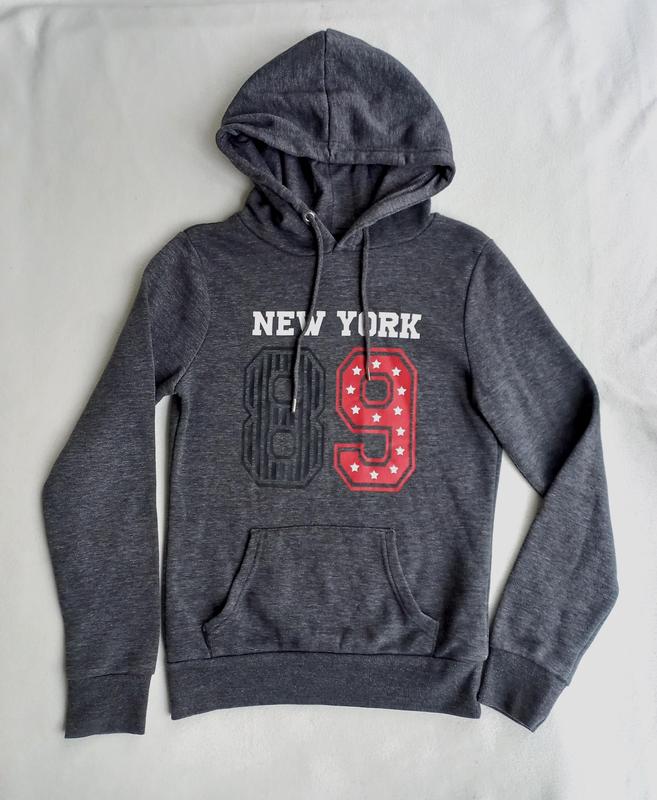 Пропоную сіру теплу толстовку худі New York 89, від Primark. Матеріал 65% поліестр, 35% бавовна з начосом. Вживана акуратно, стан відмінний, без дефектів, дивіться фото. Розмір вказано 4\6, 2XS. Довжина 60 см, ширина плечей 38 см, довжина рукава 64 см, ширина грудей під пахвами 44 см.