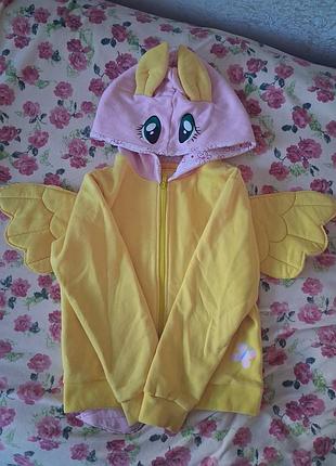 кофта девчанка май лит пони, с капюшоном сзади есть крылышки то хвост, на капюшоне глаза и ушки на рост около 120-125 см