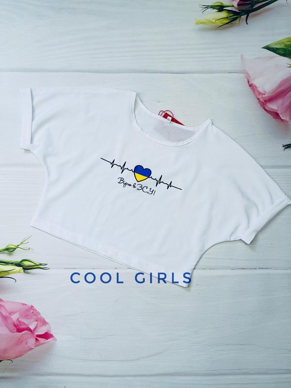 Стильный топ с патриотической надписью «Вирю в ЗСУ» Эта моделька очень нравится девочкам, шикарно топ подходит под джинсы, шорты и юбочки. Тканина софт. Доступные размер: 💛134р. Длина 36 см, пог 37 см. 💙140р. Длина 37 см, пог 39 см. 💛146р. Длина 38 см, пог 41 см. 💙152р. Довжина 41 см, пог 43 см. 💛158р. Длина 43 см, пог 44 см.