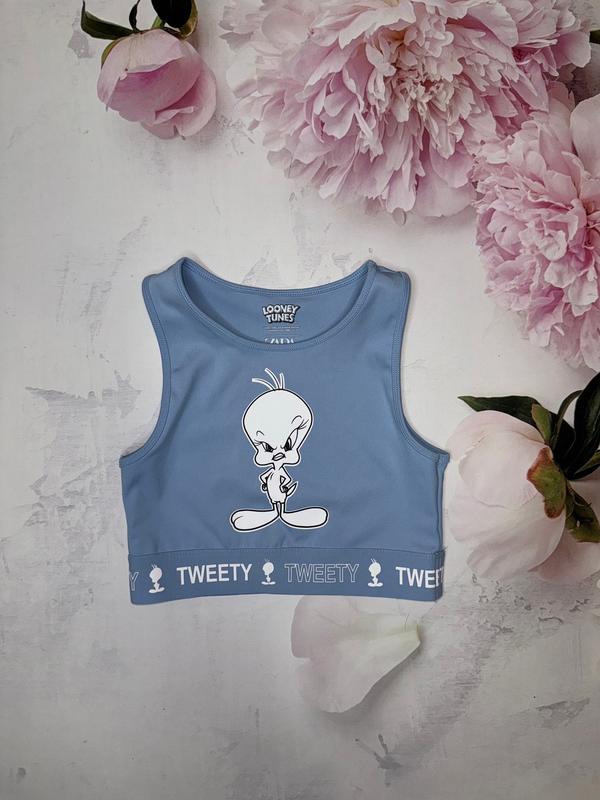 Эластичный топ с Tweety Отличный вариант для лета или занятия спортом Состояние идеальное 🏷️Zara 9-10 лет/140 Длина 30. ПОГ 30