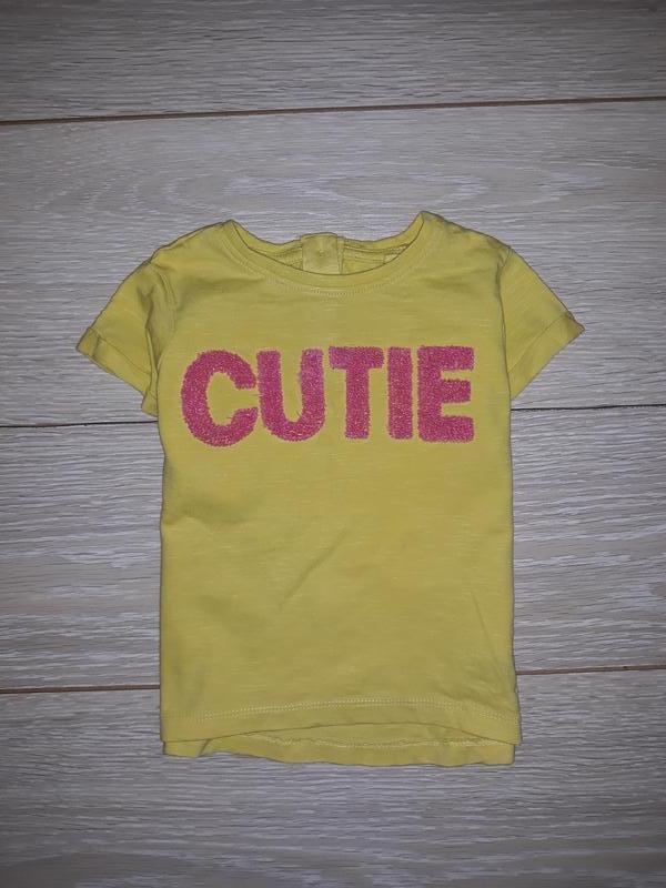 Яскрава фірмова футболка для дівчинки 9-12 міс. На спинці застібається на гудзики. Склад 100% бавовна. Стан дуже хороший Заміри: довжина по спинці 36 см, попереду трохи коротше, ширина між пахвами 28 см, плечі 23,5 см Виробник: Next Розмір: Інший Колір: Жовтий