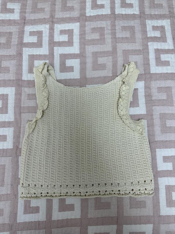 Стильный плетеный топ от известного бренда Zara. Очень нежный и приятный к телу. Хорошо подходит к любому низу. Стан идеален. Заміри на фото.