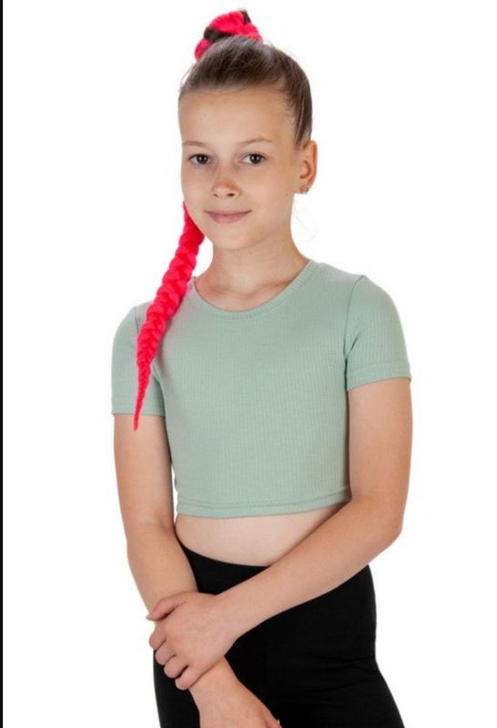 Топ, укороченная футболка для девочки в рубчик, состояние идеальный, мятного цвета, ткань тянется, на рост 122-128-134 Длина 28 Ширина под руками 27 Заходите в мой профиль много вещей