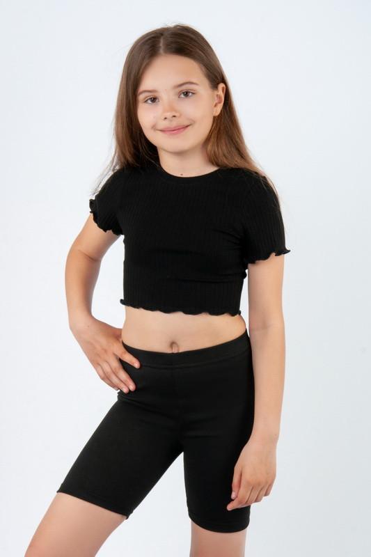 Базовий топ для дівчаток-підлітків із легкого мустангу. Модель прилеглого силуету з короткими рукавами, округлим вирізом, виконана в кількох кольорах – як світлих, так і темних. Топ відмінно доповнюється будь-якими джинсами з високою посадкою, брюками, шортами та спідницями. Полотно високої якості, завдяки фактурі "рубчик" досить еластичні, добре облягає фігуру. Полотно: мустанг Склад: 95% бавовна, 5% еластан