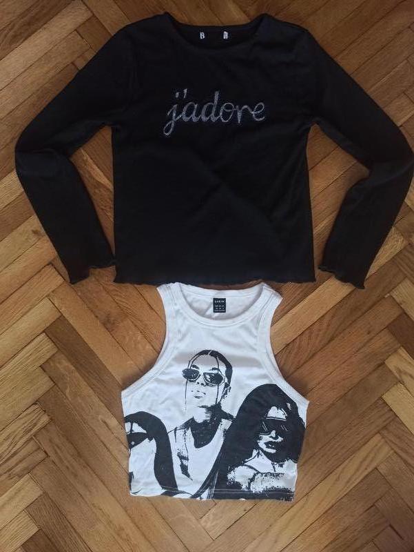 Стильный топ в рубчик на девочку 10-13 лет, или XXS-XS. Черный длина -45, 5 см, рукав -52 см. Белая длина - 36 см. Белое состояние новое, черный идеальное. Цена за 1 - 200 грн. При 2 - 300 грн.