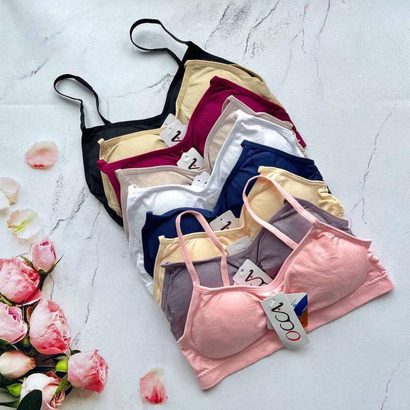 Топы для девочек. Размер: на чашку АА\А (на объем груди до 80 см). Цвет: микс. Топы очень удобны для ношения дома или во время тренировок. Со съемными бретелями, не регулируемыми. Со съемными вставками. Лиф мягкий однотонный. Состав: 94% poliamide, 6% spandex.
