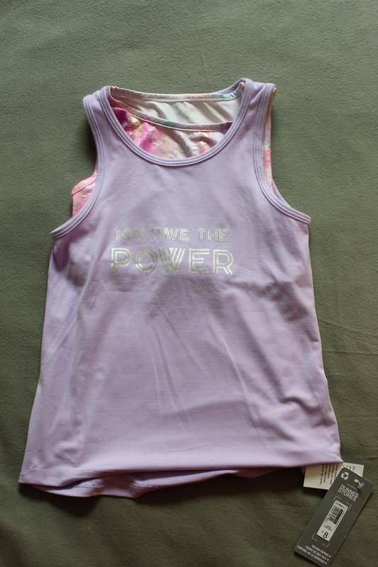 Двойной спортивный топ из двух предметов для девочки 5-6 лет Очень качественный и оригинальный набор из двух топов. Специальная технология изготовления, обеспечивающая: - быстрое высыхание - двусторонняя растяжка - управления влажностью Двойной топ состоит из: 1. Нижний розовый топ с декоративными блестками. -Снизу на резинке - Полностью эластичный ЗАМІРИ: Плечи 22 см Под руками 26,5 см Ширина виробу по низу 26 см Высота 24 см 2. Верхний лиловый топ Плечи 21 см Под руками 30 см Высота 47 см