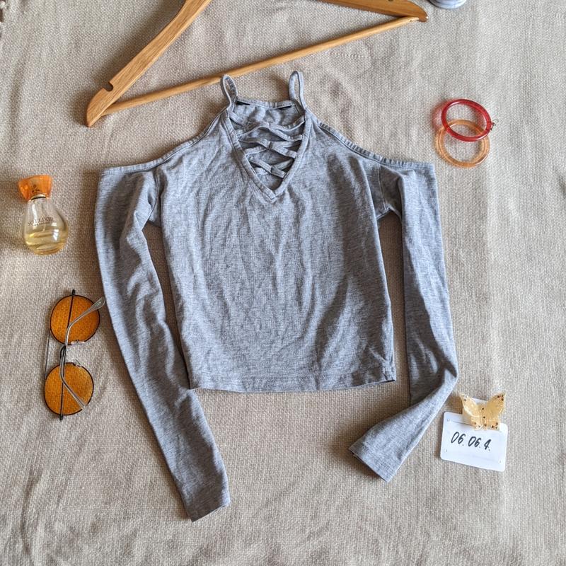 кофточка серьга с переплетением спереди идет как топ прекрасного состояния и отличного вида под мышкой в спокойном состоянии 34,5 до 47 длина рукава от разреза книзу 38 отличное состояние по этикетке new look 10-11 в составе 85 хлопка
