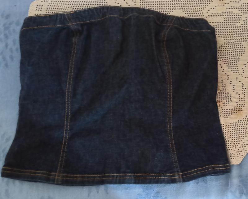96% Коттон,4%эластан.полуобхват талии-40см,полуобхват верха топа,ширина верха-43см,полуобхват груди-46см длина топа от верха до низа-28см. недостатки :обработка 2 швов сзади ,смотрите 2 последние фотографии. размер украинский 46,48 сзади молния на всю длину.