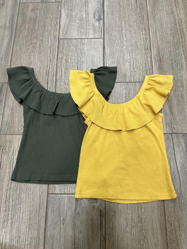 Классные топы майочки на девочку 11-12 лет (146-152см), желтый цвет и цвет хаки, состояние идеальное, цена за комплект 220 грн