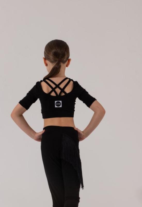 Топ с рукавом и интересная спина Тканина: масло (мʼяка тканина на дотик) Размеры: 128, 140, 152 Также есть юбка под этот топ (с шортами)