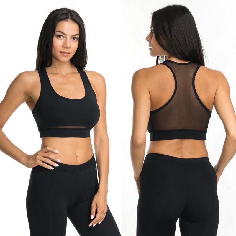 Топ спортивный со вставкой сетка со съемными чашками 146-170см бифлекс