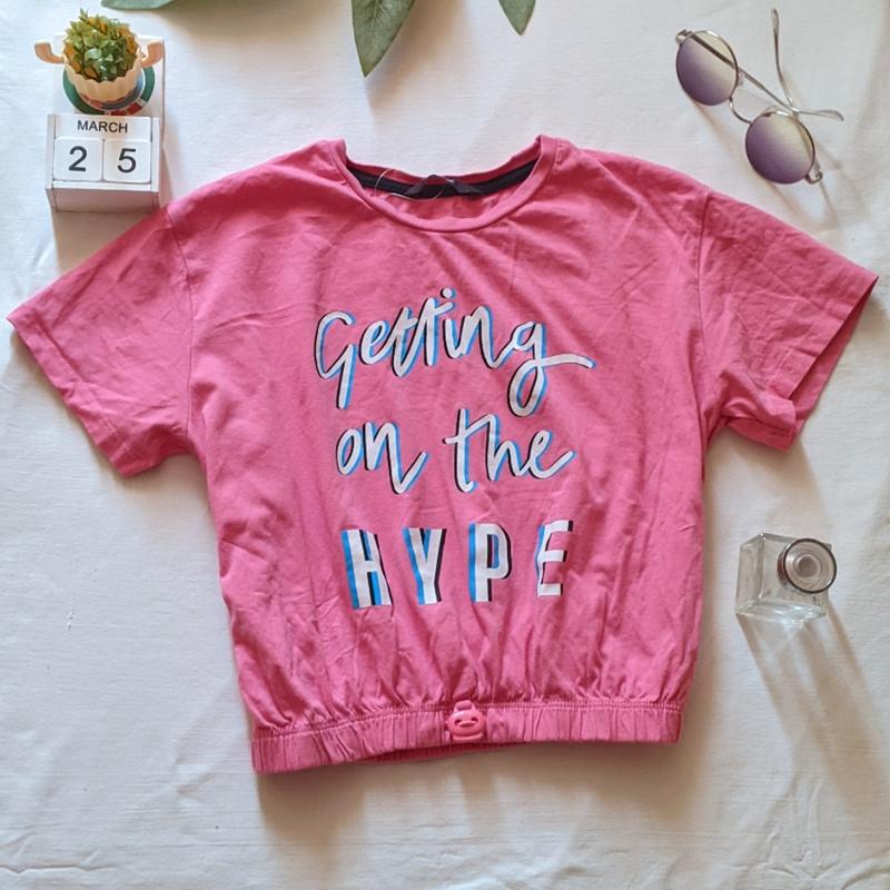 красиво укорочена рожева футболка топ бренд Джордж, низ на утяжке стиль оверсайз под мышки 44 тянут до 54 легко линия плеча 37, состояние отличный