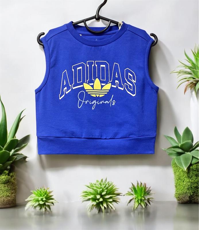 Дитячий топ з колекції Adidas Originals. Модель виготовлена мʼякої еластичної тканини. Склад 100% бавовна. - Приталена модель. - Класичний, круглий виріз горловини. - Модель з принтом. - Довжина: 32 см. - Ширина під пахвою: 32 см. - ширина по нижній резинці: 30 см. - Розмір 140 см / 9-10 років