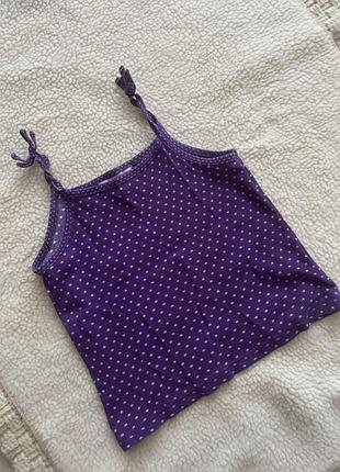 Майка топ для девочки в горошек/ Тянется,плотность средняя. Подойдет на 7-10 лет/ Длина вместе с бретелями 40 см/ Пог 34 см/ Пот 34 смі Знизу 36 см/ Серая майка более спортивный вариант подойдет в качестве базы летом или под одежду/ Длина 49 см/ Плечи 25 см/ Пог 33 см/ Пот 32 см/ Знизу 33 см/ Продается без возврата.
