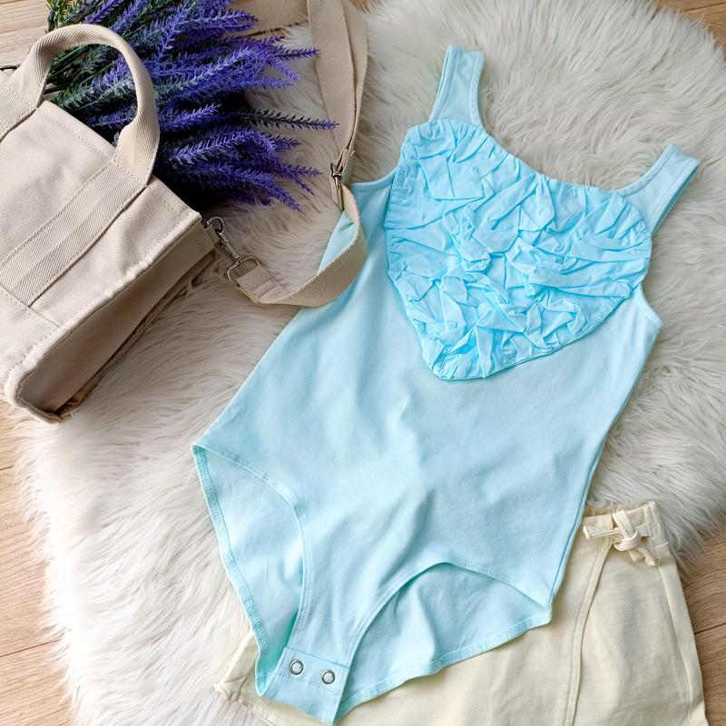 Топ-боди с бретелями и отделкой в форме сердца с волнистыми краями на груди. Застегивается на кнопки внизу. На девочку 10 лет (140 см) ✅Плечи: 24 см ✅ПОГ: 30,5 см ✅ПОТ: 28,5 см ✅ПОБ: 31 см ✅Длина: 56 см
