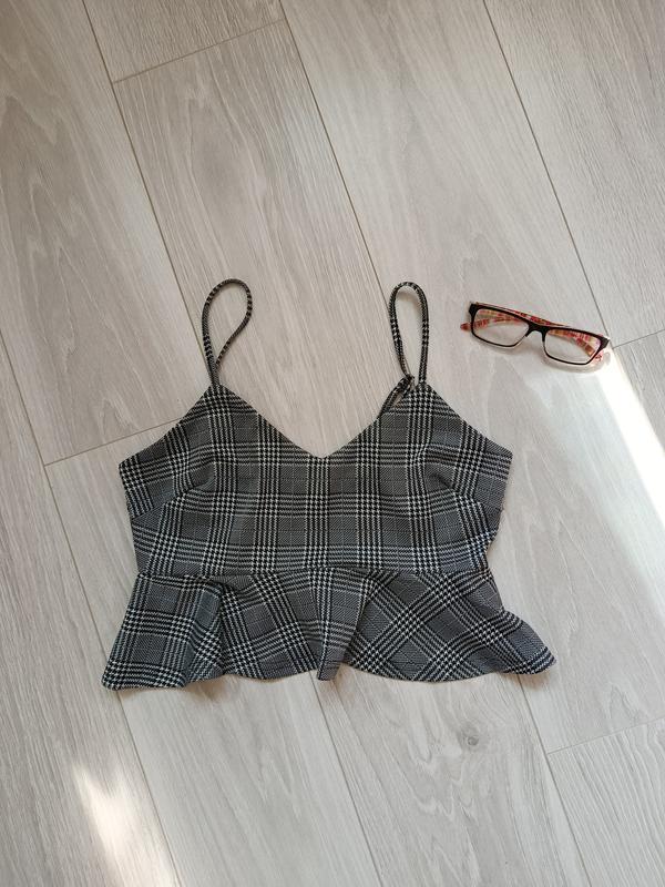 топ на бретельках Принт веселая клетка тканина трикотаж размер US 6 UK 10 EU 38 на талии красивая рюша - баска для офиса, красиво носить под пиджак