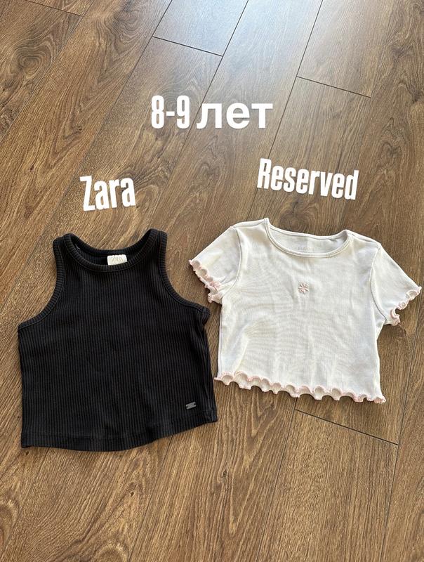 Темний топ від Zara для дітей віком 8-9 років. (128-130зріст) Чорний колір, класичний крій. Також білий топ від Reserved (128зріст) Вишукано і стильно! Заміри на фото