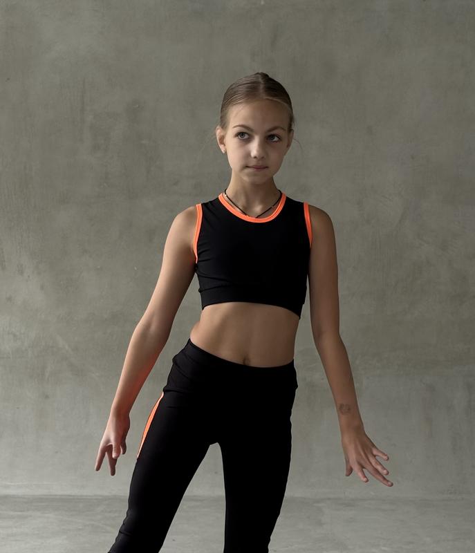 Стильный топ для занятий танцами. Цвет черный и черный со вставками оранжевого, салатового или розового Идеально садится, не сдерживает движений