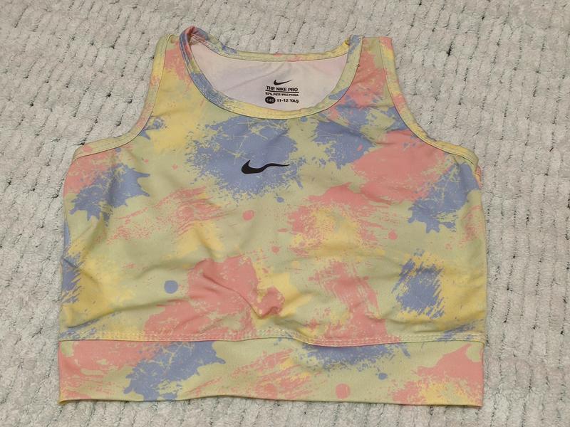 Кроп-топ Nike Pro Dri-FIT с принтом тай-дай для тренировок, размер 11-12 лет. Оригинальный.