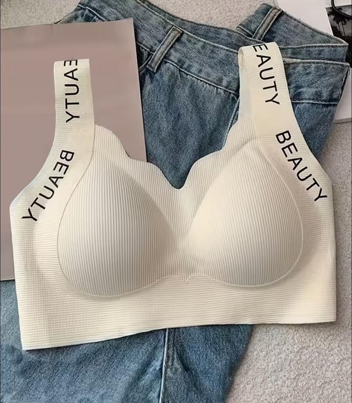 Бюстгальтер без косточек с фиксированными чашками, мягкая поддержка для небольшой груди, бесшовный гладкий дизайн, комфортная посадка с деталями-ветрильниками, уникальное украшение в виде букв "Beauty"