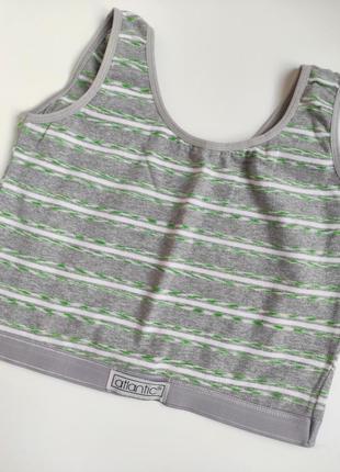 В хорошем состоянии спортивный бюст- топ Atlantic без особых дефектов. длина 32, ширина 33. на 11-12 лет.