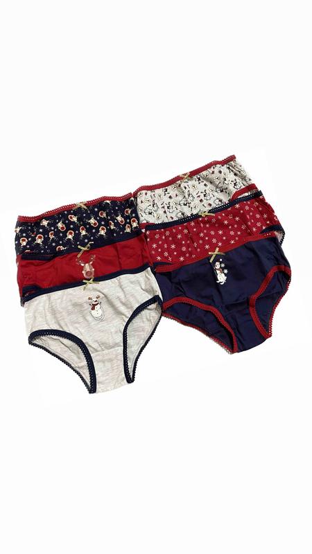 Трусики для девочки Primark 6шт. Котоновые с красивым новогодним принтом. Рост 122-128см