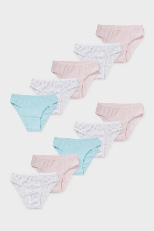 Трусы C&A для девочки. Размеры: 98/104, 110/116, 122/128 Состав: 100% хлопок Набор 5 шт – 219 грн 98/104 ПОТ – 21, высота – 15.5 110/116 ПОТ – 22, высота – 17 122/128 ПОТ – 23, высота – 19.5