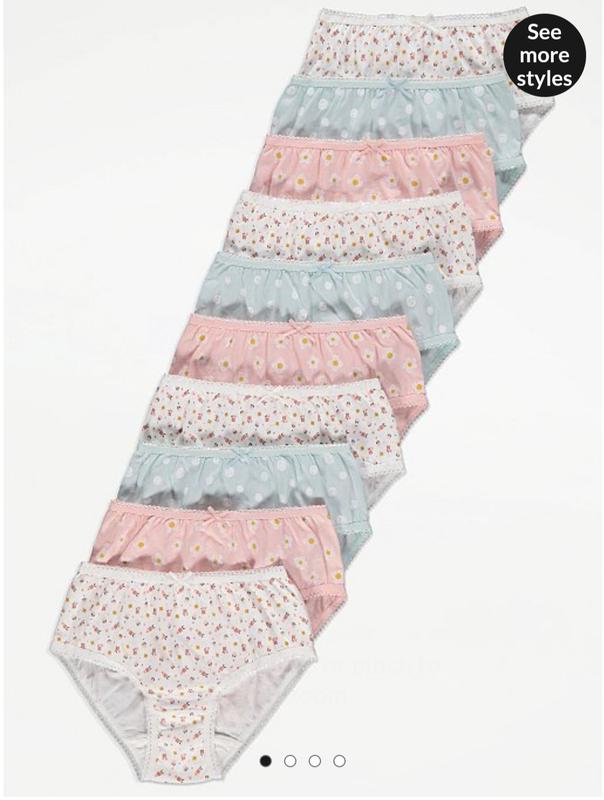 Трусики для дівчинки від George на 4-5р (110см). В упаковці 10шт Якість супер. Продаж упаковкою, або половина упаковки без вибору (тобто 5шт верхнього ряду або 5шт нижнього ряду). Ціна 470грн/упаковка Ціна 260грн/5шт