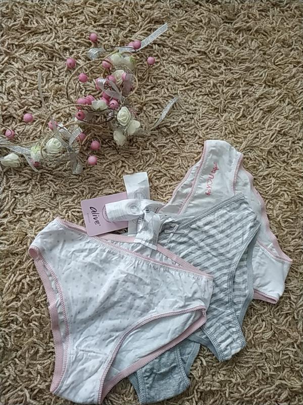 комплект из 4 трусиков на девочку. рост 140см. 100% биокоттон. замеры: нот 24см, высота 21см. все замеры в спокойном состоянии.