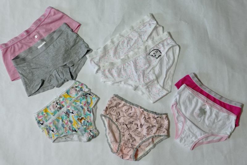 Трусики шортики розовые и серые фирма H&M на 6-8 лет на 128 см цена 60грн состояние прекрасное Трусики с животными фирма tu на 3-4 года на 104 см цена за пару 50 грн состояние прекрасное Трусики с котиком и сердечками фирма primark на 6-7 лет цена 60 грн за 2 пары Трусики фирма next с пони на 5-6 лет ( думаю большемерят ) на 6-7 лет цена 35 грн состояние прекрасное