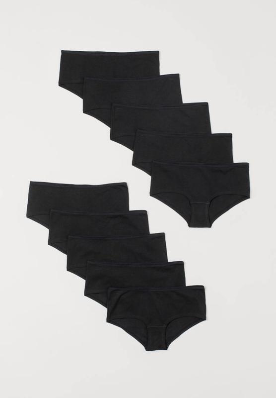 Дорогі покупці! Перш ніж натиснути кнопку ЗАМОВЛЕННЯ, уточніть наявність розміру через кнопку ЗАДАТИ ПИТАННЯ, Приємних покупок! Трусики -шортики фірма H&M - однотонні- чорні , в упаковці 5 шт , СКЛАД 95 %- бавовна, 5%-еластан РІСТ xs- ріст 146-152 см ( на 10-12 років талія 29 см висота- 20 см)
