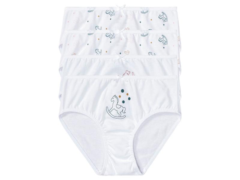 Размер 98/104-185грн 110/116-185грн Трусы выполнены из мягкой трикотажной ткани, с эластичным поясом. С высоким содержанием хлопка. Подходят для повседневной носки . Детское белье для девочек. Нимечина. В наборе 4шт 95% бавовна; 5% еластан.