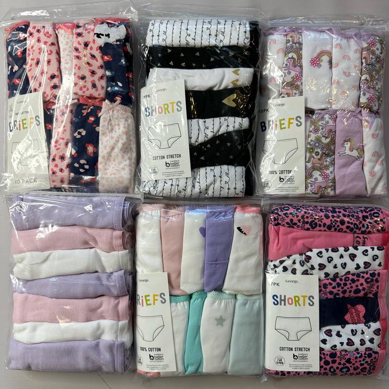 450 грн набор трусиков по 10 шт Джордж🐈⬛ 100 % cotton 🍥 Пятнистые верхние 6-7 лет. Черно/белые продано Эдинорог 8-9,9-10 лет. В рубчик однотонные шортики 8-9, 10-13 лет. Звездочки 10-12 лет. Последние сердечки 9-10, 11-12 лет.