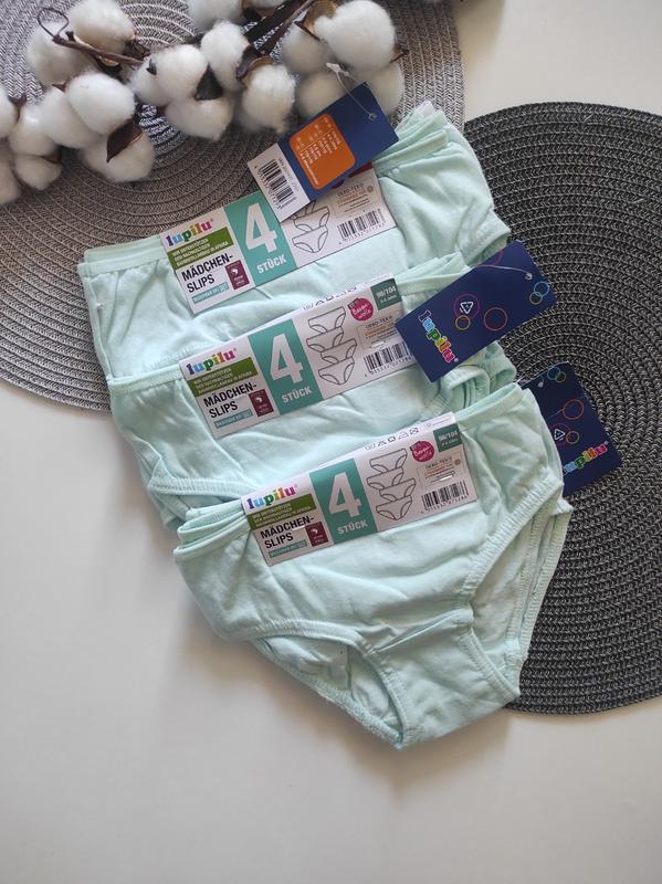Набор трусов на девочку Lupilu. Склад :100%бавовна. ❌98/104(2-4роки) 2 набора ПОТ:21см ✅110/116(4-6роков) ПОТ:22см. 🏷️160грн-за набор из 4-х шт.