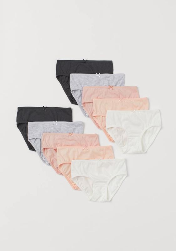 Дорожкие покупатели! Прежде чем нажать кнопку САМЛЕНИЯ, уточните наличие размера через кнопку ПРИМЕЧАНИЯ, Приятных покупок! Трусики фирмы H&M на девочек,КОЛИР - графит, белые, серые, персик, пудра - однотонные.. СКЛАД 100%- бавовна , в упаковці 5 шт . РИСТ 110-116 ( 4-6 лет талия 25 высота 20 см )122-128 см ( на 6-8 лет талия 27 см, высота 22 см) 134-140 ( на 8-10 лет талия 29 высота 24)