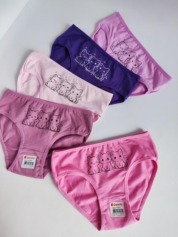 🐱Трусики с котиками для девочек от Donella🐱 Трусики изготовлены из хлопковой ткани премиум качества✨ Ткань мягкая и приятная к телу🥰 ➖Размеры: ▪️8/9 лет на рост 134-140см ▪️10/11 лет на рост 147-152см