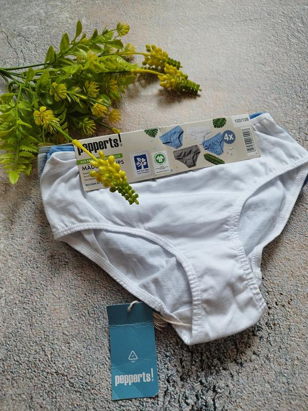Набор трусиков для девочек от бренда 💞 Pepperts 👌 в наборе 4 трусиков Очень удобные дождичи) 🧷 По наборке на рост 122 - 128 см ( 6 - 8 лет) 📌 полухват пояса 24 см